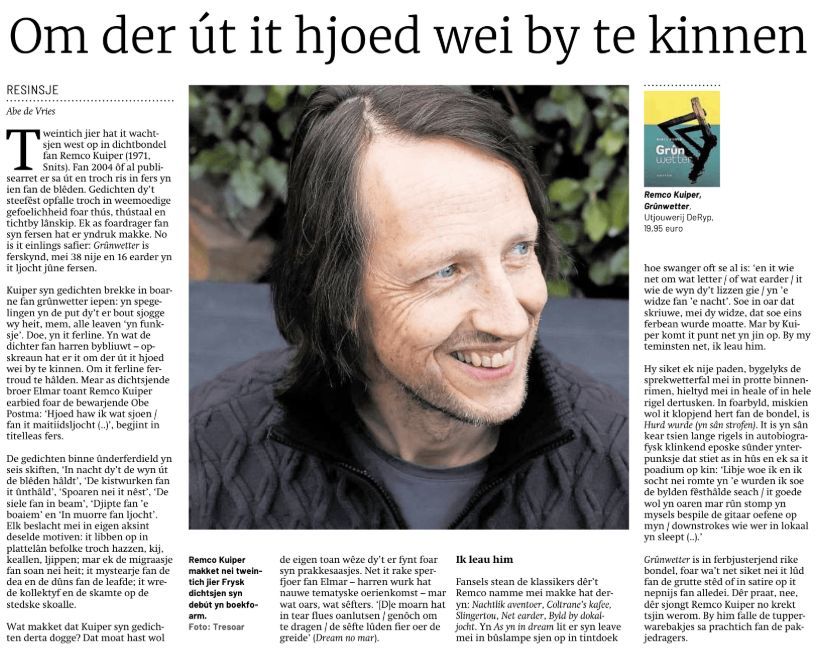 Yn in stikje op de webside Brekt oer omslaggen fan Fryske dichtbondels skreau Jelle van der Meulen oer Grûnwetter: